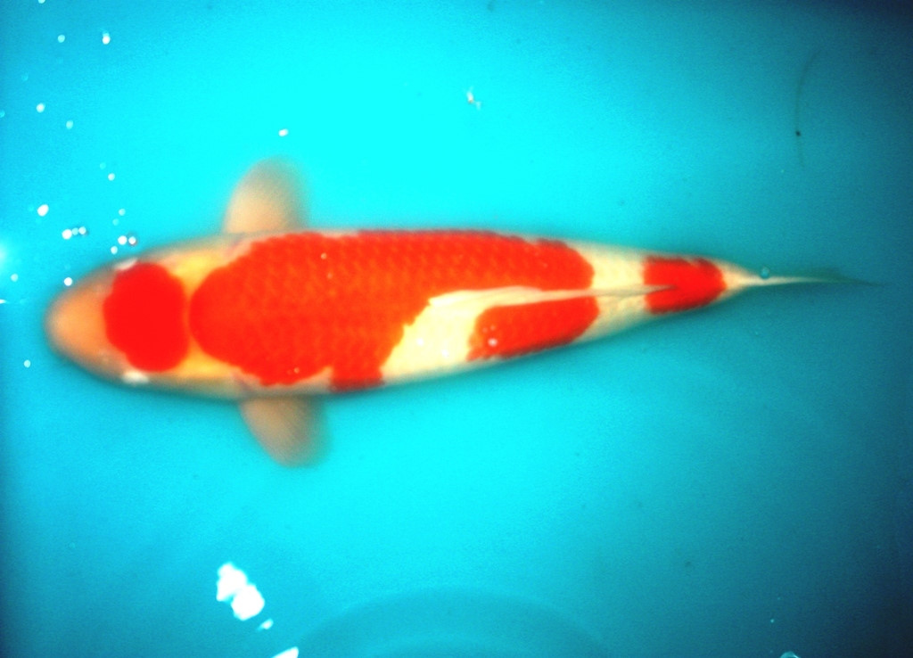 Cũng trong lô hàng này, có chú cá Koi dòng Sanke chiều dài thân hơn 1 mét. Theo nhiều người chơi cá chép Koi lâu năm, việc nuôi được một chú cá Koi có chiều dài khoảng 0,9m đã là điều cực kì khó và hiếm. Trong ảnh là chú cá Koi dòng Sanke dài hơn 1 mét.