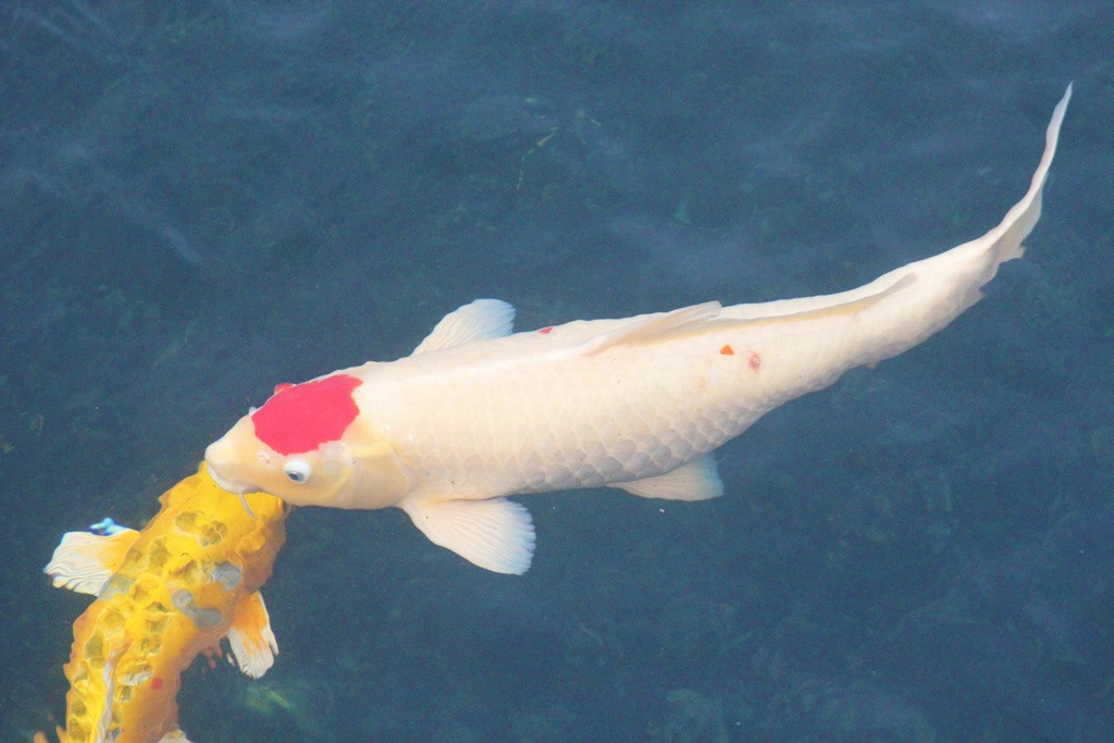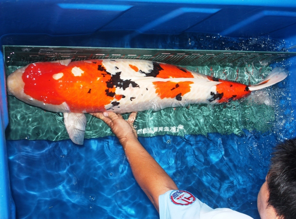 Ngoài ra còn nhiều cá khác được định giá từ 2.000 đến hơn 10.000 USD. Trong ảnh là một chú cá Koi dòng Tancho dài hơn 90cm.