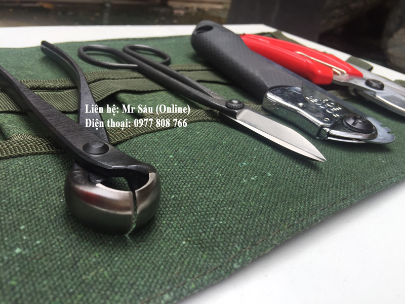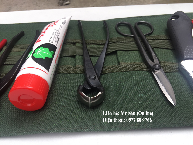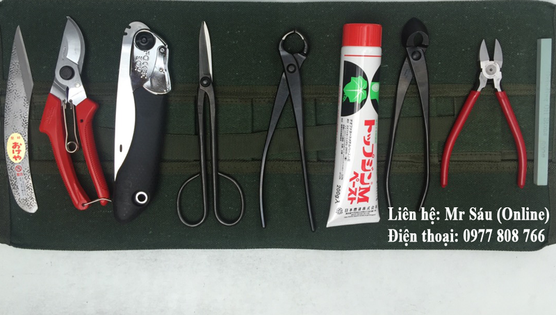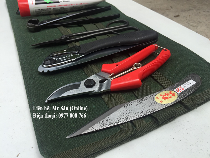 Gồm: Túi đựng, đá mài, kềm cạp tròn, kềm cạp xéo, kéo cắt cành, dao ghép cành, kéo tỉa, cưa xếp, keo liền da cây mới nhất, kềm cắt kẽm