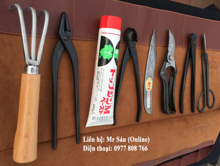 (Bộ dụng cụ Bonsai Nhật Bản 8 món được tặng thêm túi đựng dụng cụ Bonsai Ryuga). Bộ sản phẩm được tạo thành từ các thương hiệu nổi tiếng của Nhật Bản Như Kaneshin, sakagen, Azumagawa...