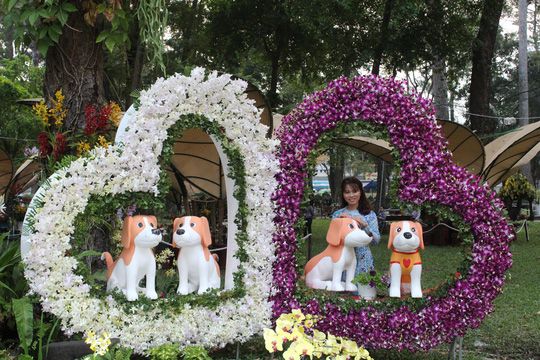 Người dân chụp hình lưu niệm tại Hội Hoa Xuân Mậu Tuất 2018
