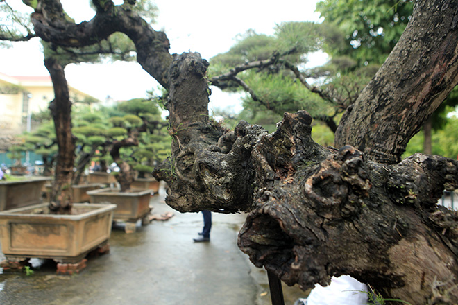 Những cây phi lao được ông Hài mua từ miền Trung cách đây 15 năm. Sau nhiều năm chăm chút, chỉnh sửa, những cây phi lao khô cứng đã trở nên mềm mại, hút hồn người xem.